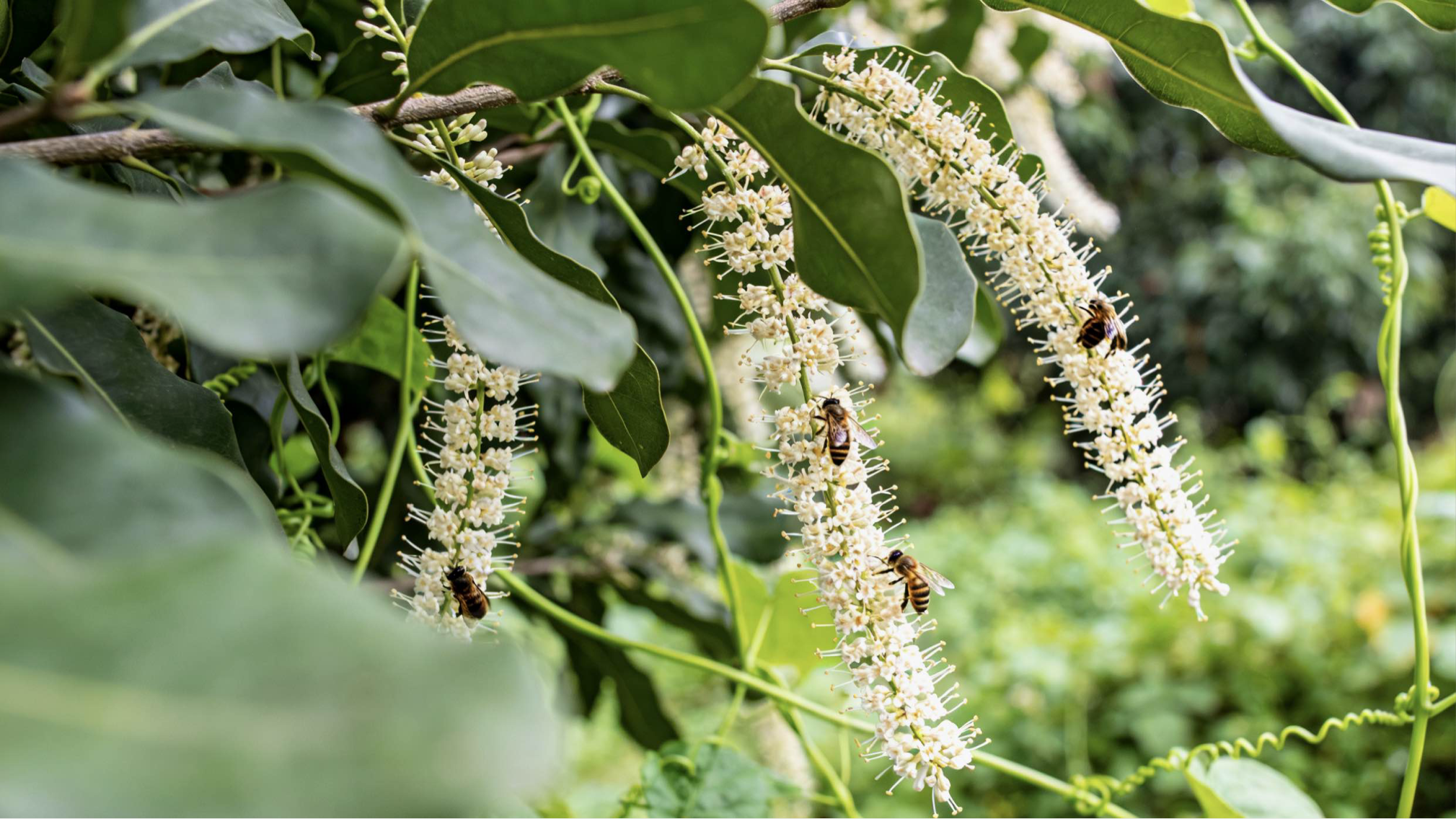 在夏威夷坚果基地授粉的蜜蜂(梁晶莹 摄)