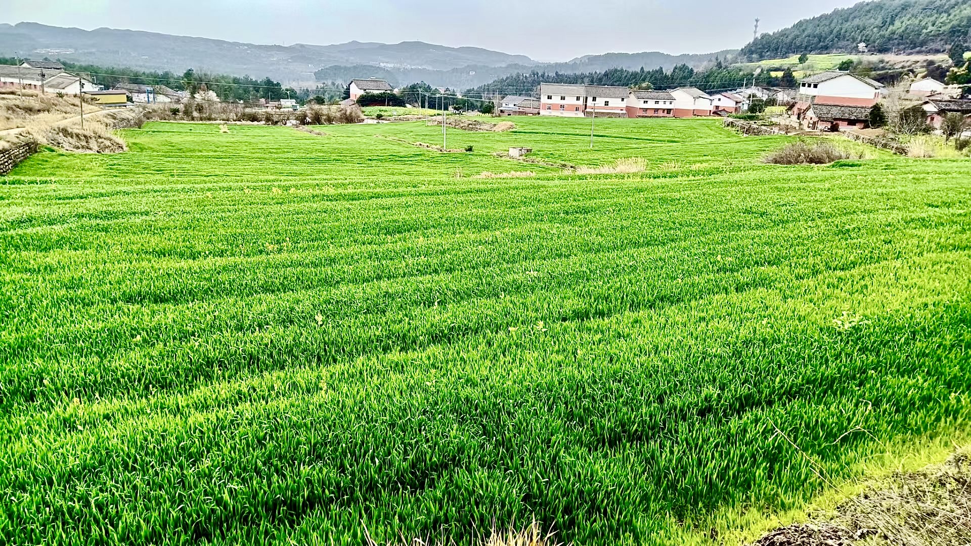 这两天,在四川省广元市昭化区各镇村,田野间绿意盎然,连绵的麦苗宛如一条绿色绒毯,与青山、蓝天、民居相映衬,勾勒出一幅生机勃勃、产业兴旺的乡村画卷。
