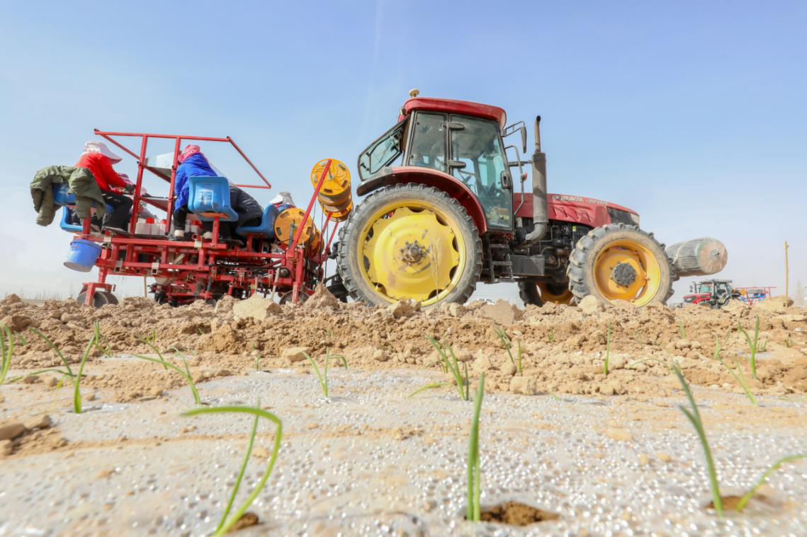 2月23日,在牙哈镇吾斯塘博依村,300亩地的洋葱种植工作正在开展,种植采用的洋葱移栽机,可一次性完成开沟、栽苗、滴灌带铺设、覆膜、覆土等作业,还可以实现多行播种,有效地提高了劳动效率,目前吾斯塘博依村洋葱种植已完成60亩,带动村民临时就业20余人,种植工作预计一周内完成。