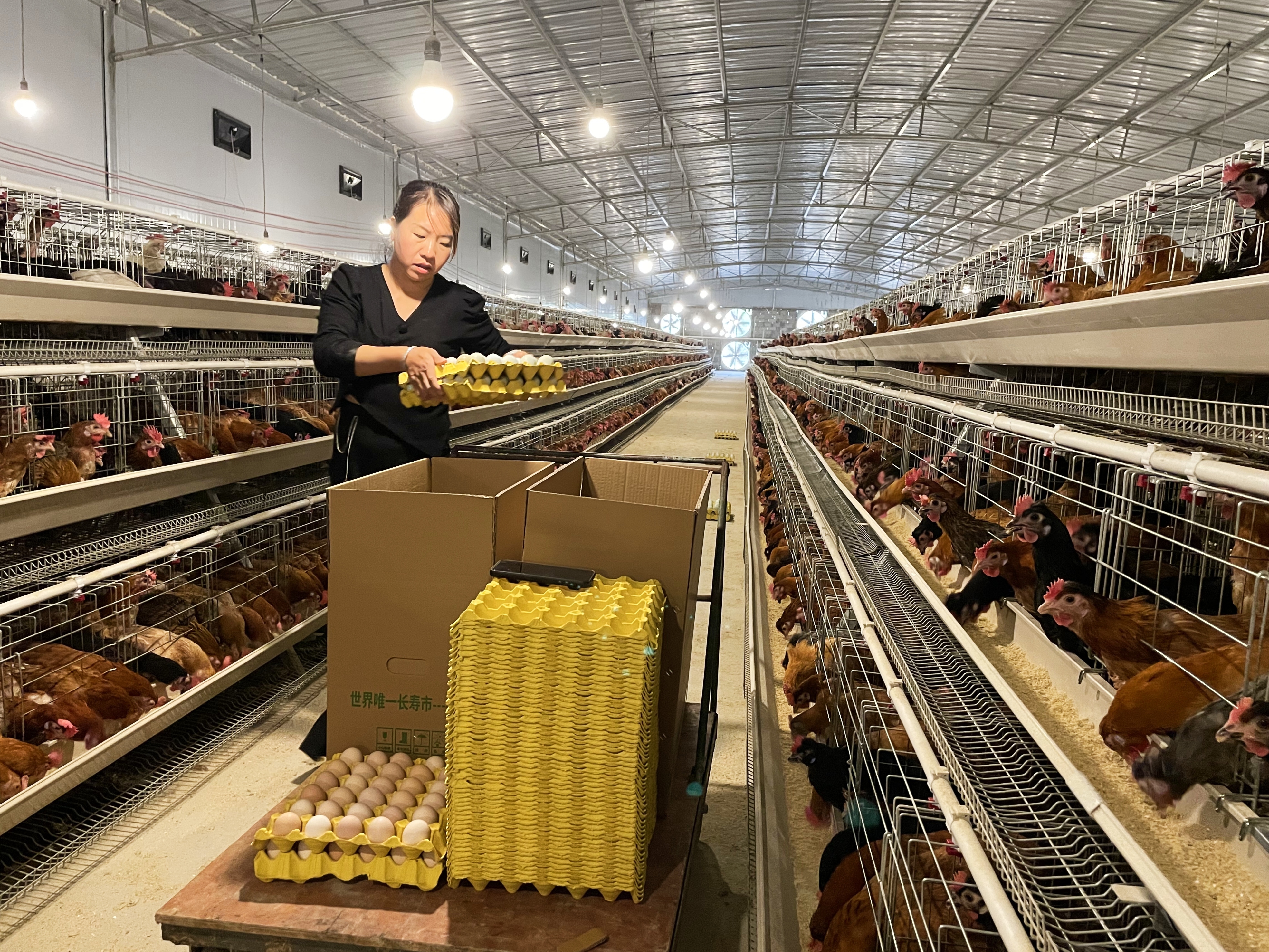 “以前最忙时,喂料、清粪、捡蛋连轴转,一天下来腰酸背痛。如今依靠智能化设备,动动手指就能管好鸡舍。”潘启接着说。车间内,随着传送带转动,只见一枚枚干净光洁的鸡蛋被整整齐齐地运送到分拣线上,不一会儿,工作人员就将传送来的鸡蛋全部码放到了蛋托上,准备进行下一步的打包、装箱。“在这里工作感觉很方便,离家就几分钟路程,既能挣钱又能照顾老人孩子,比外出打工舒心多了。”30多岁的村民龙胜玲麻利地将鸡蛋码入蛋托,像她这样在家门口就业的村民有10多个。