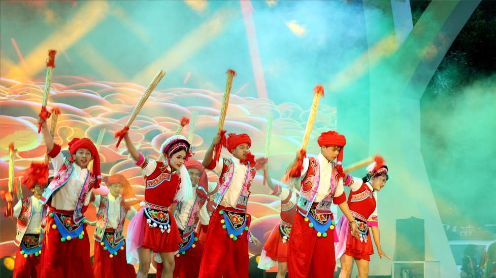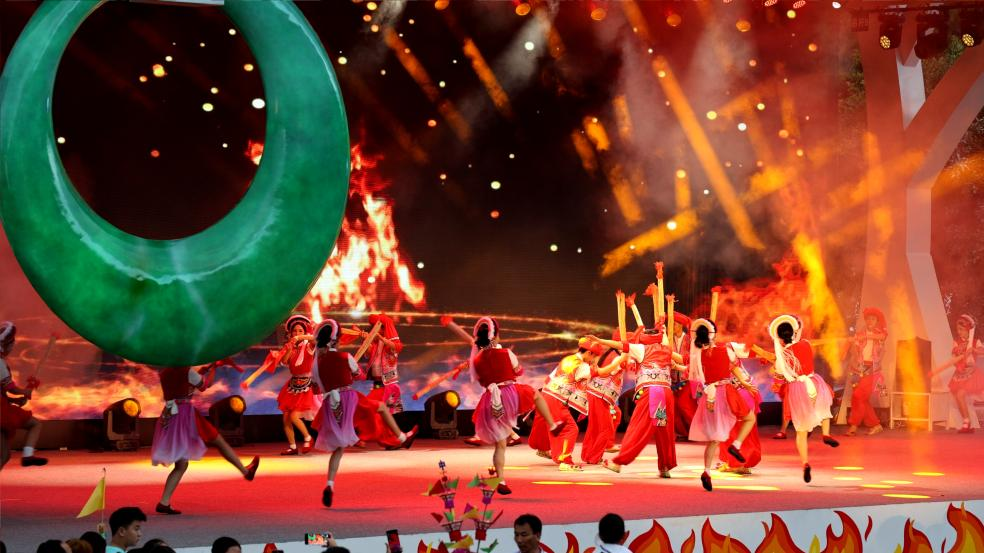金梭岛烟火海东舞台表演火把节舞蹈(刘擂 摄)