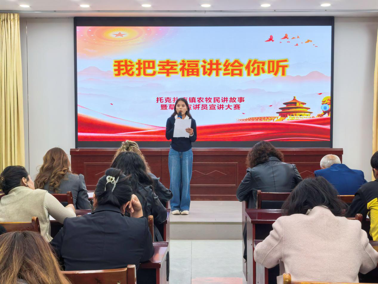 各乡镇比赛现场气氛热烈、掌声此起彼伏,农牧民选手与草根宣讲员依次登台,用最接地气的表达传递最真挚的情感。在铁日木乡与托克扎克镇的大赛中,参赛选手用亲身经历与身边鲜活事例,从衣食住行变迁、邻里互助温情、乡村振兴新貌等细微视角切入,以质朴真挚的语言,深情讲述在党的惠民政策指引下,家乡产业提质增效、人居环境焕然一新、教育医疗保障完善、群众增收致富的生动实践,抒发对党的热爱之情。
