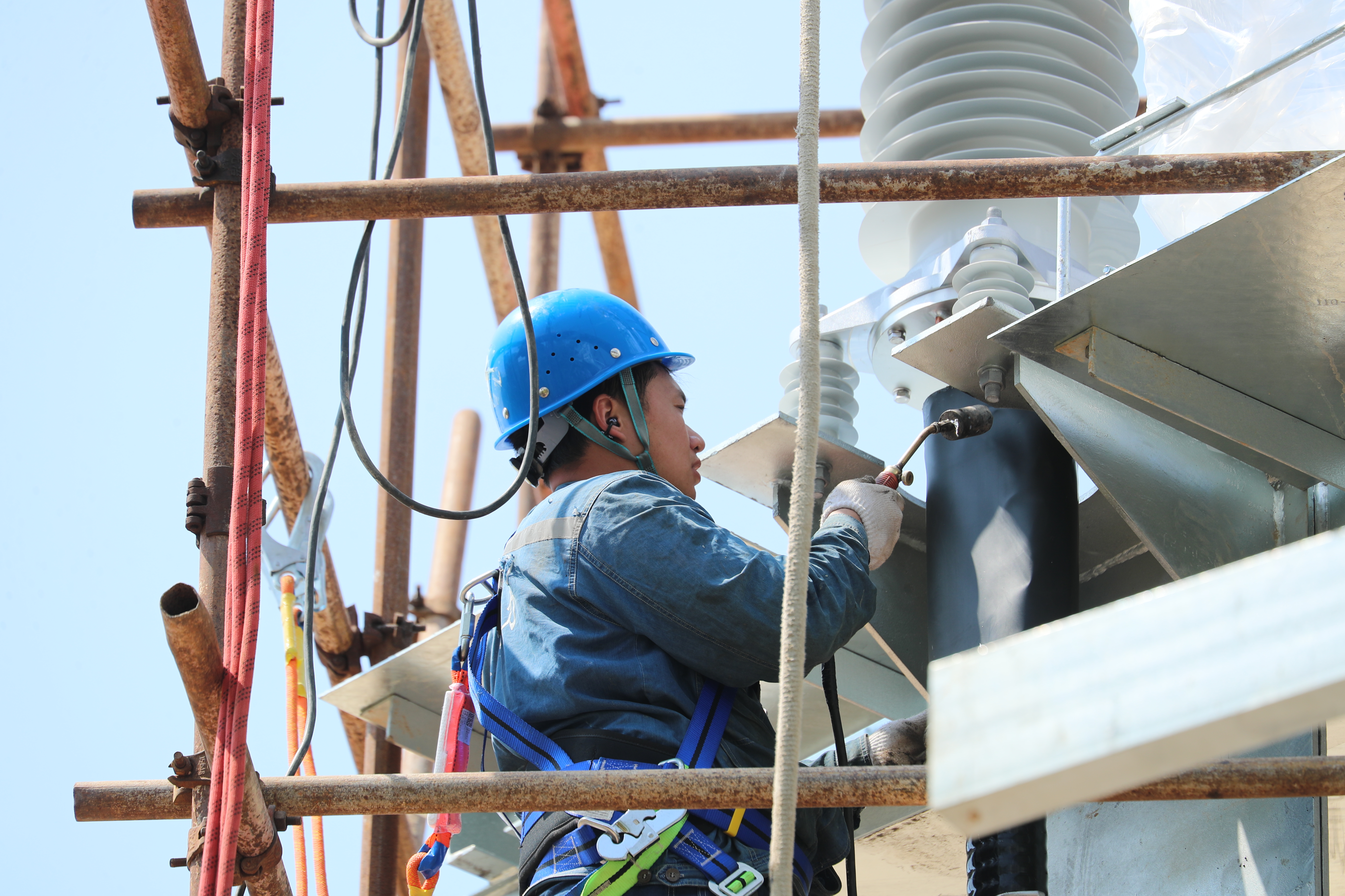 在施工现场,新立铁塔上方,施工人员在做好施工前的现场安全措施后,正加紧进行最后的设备安装;电缆井下,作业人员同步制作电缆头,一丝不苟;规划区内,挖土机与渣土车来回穿梭,各道工序紧密衔接,紧张而有序。