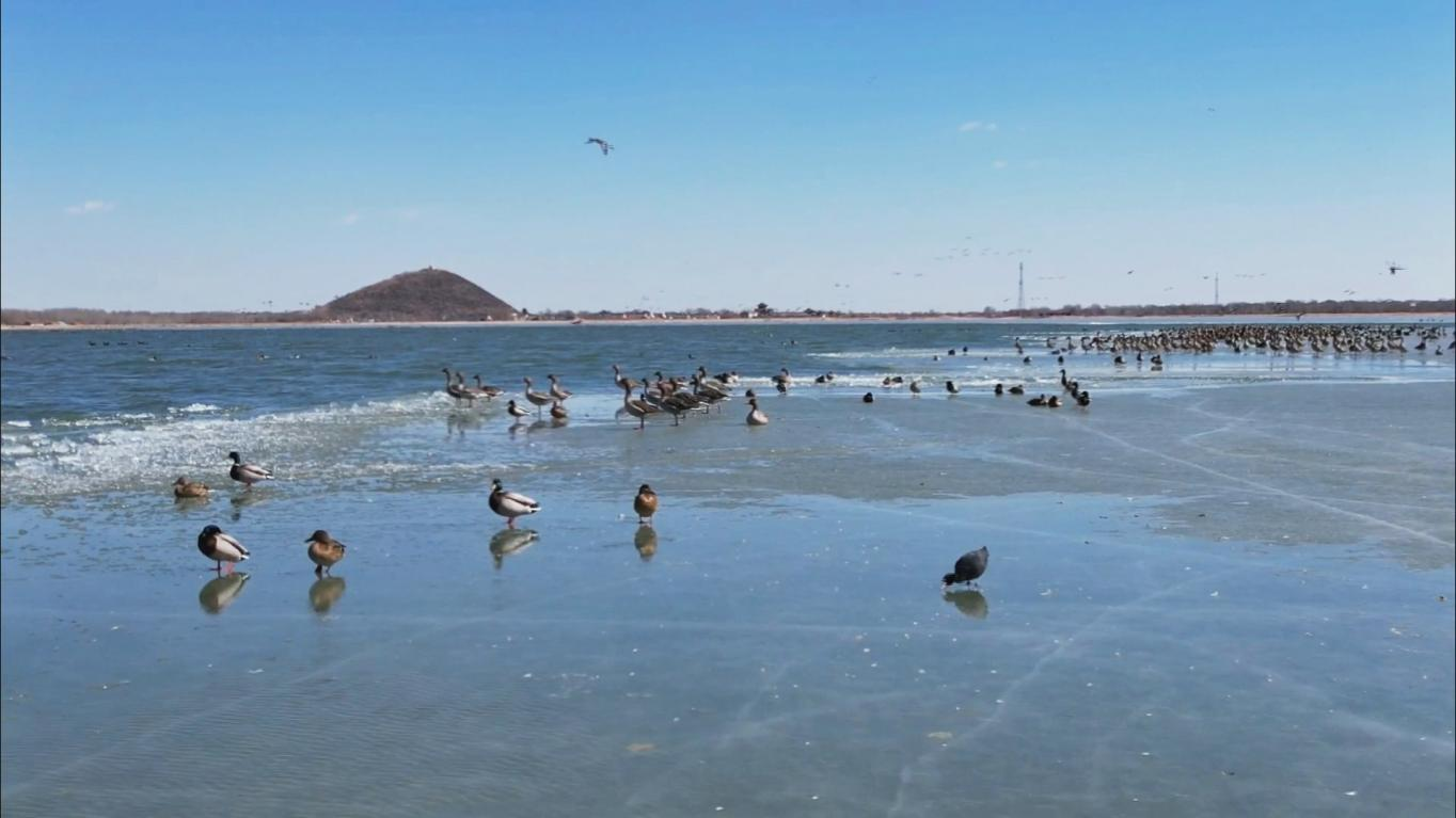 “今年我们监测到的候鸟种类有30余种,总数大约在3万多只,像丹顶鹤、东方白鹳这些国家重点保护鸟类,今年的种群数量比去年明显增加。我们每天分片巡护,清理渔网排查安全隐患,同时用无人机监测,为候鸟营造安全、适宜的栖息环境。”内蒙古双合尔湿地自然保护区保护与建设中心工作人员白文全说。