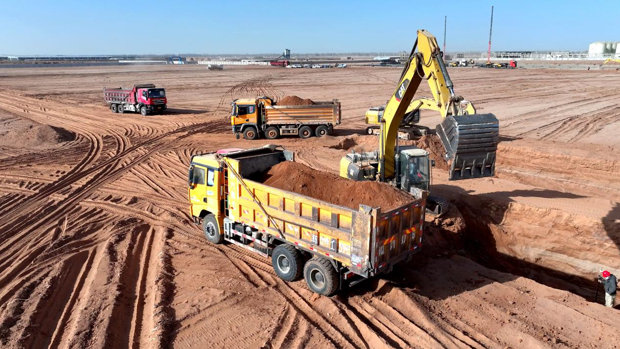 3月25日,记者在项目现场看到,机械轰鸣、塔吊林立,挖掘机、装载机等大型工程车辆往来穿梭,施工人员分布在各个作业面,有序开展土建、钢结构焊接、设备吊装等作业,呈现出一派大干快上、热火朝天的建设景象。