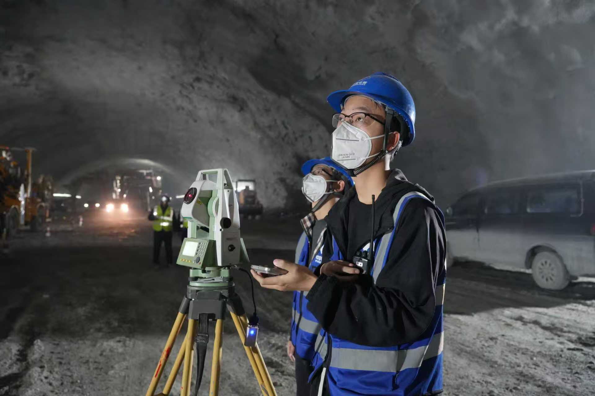 施工人员正在进行支护锚杆定位测量 (张源 摄)