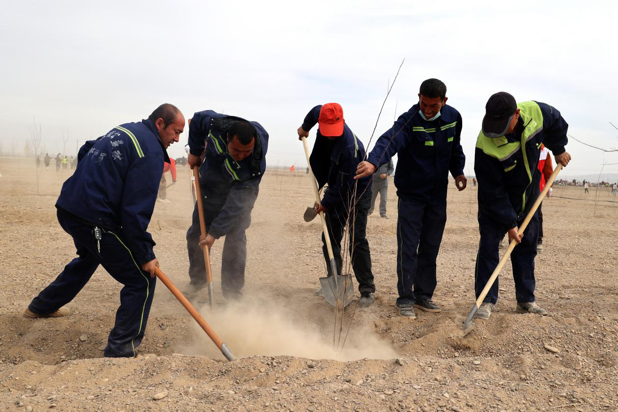 乌什县前进镇护边员麦吾兰·麦合木提在植树现场说:“植树造林,保护环境,建设美丽边疆是我们义不容辞的责任。作为新时代护边员,我将更加积极地参与生态建设,让家乡更美丽。”