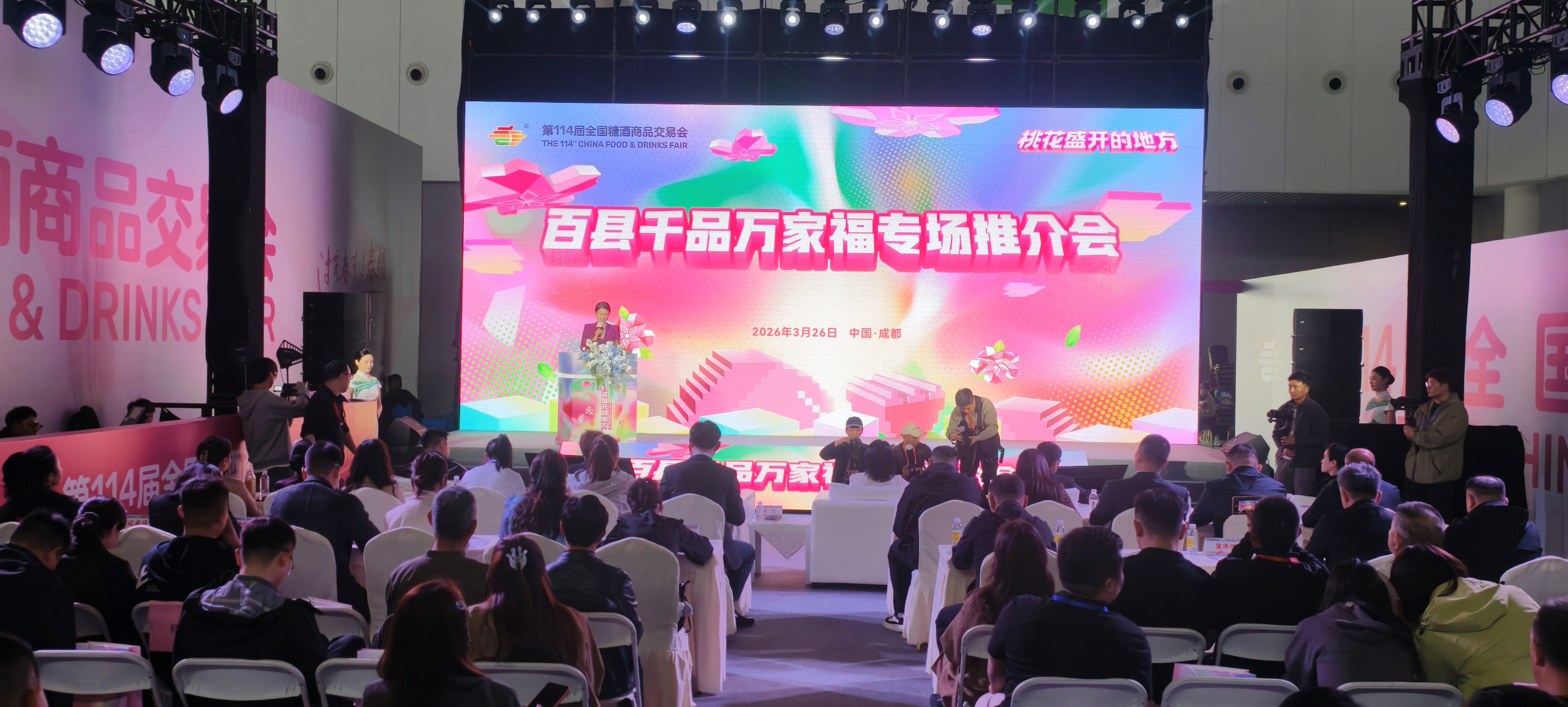 桃香满径,千品争辉;福暖万家,共话振兴。3月26日,在第114届全国糖酒商品交易会的热烈氛围中,“桃花盛开的地方”百县千品万家福专场推介会如约启幕。这场以县域特色好物为媒、以产销精准对接为桥的盛会,汇聚央企力量、行业智慧、平台资源与县域活力,将全国糖酒会的资源优势与乡村振兴的时代需求深度融合,让千款县域特色产品走向广阔市场,让万家福泽与县域发展同频共振,为食品产业高质量发展与乡村产业振兴注入全新动能。