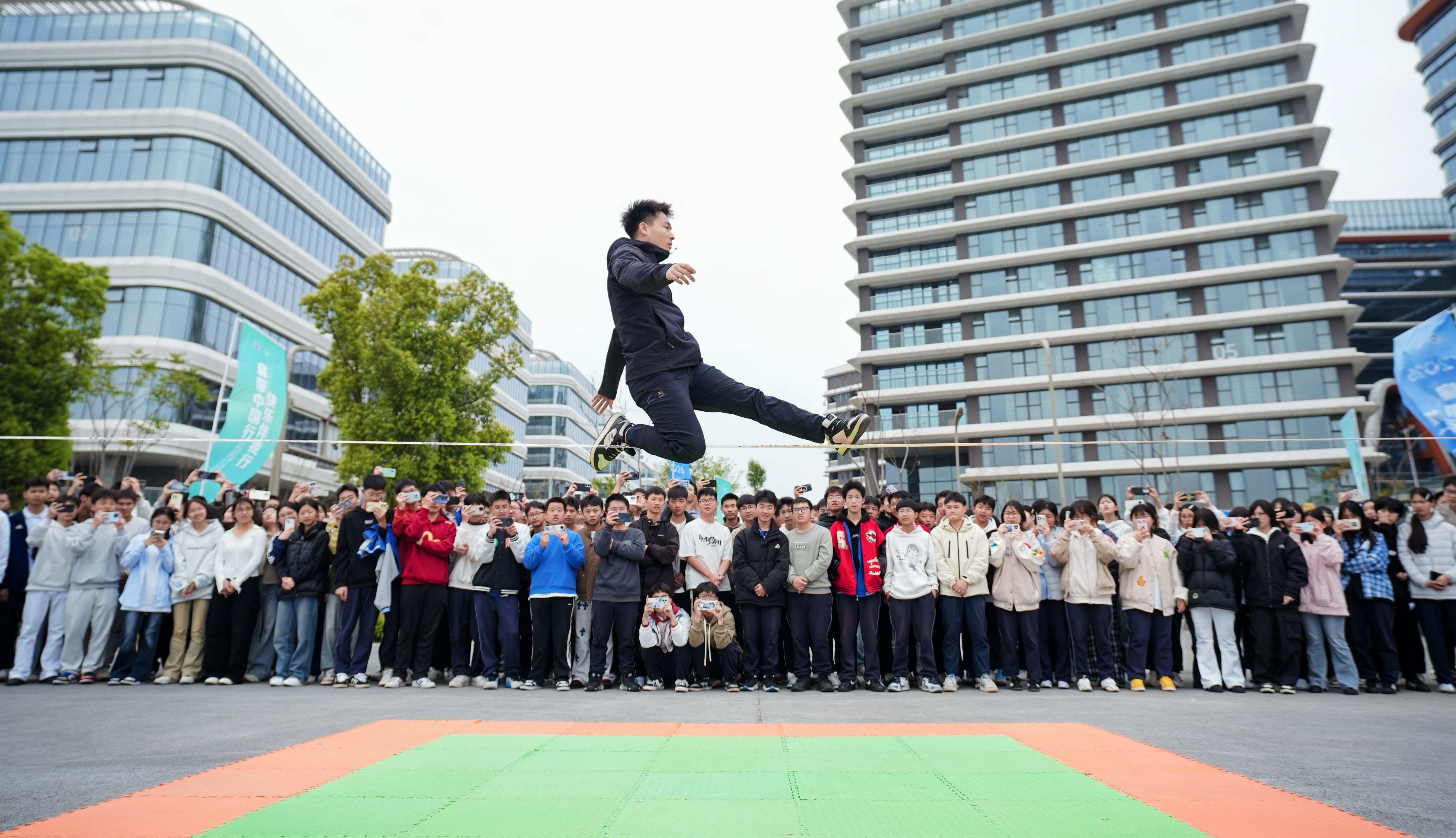 趣味挑战环节中,扁带平衡小游戏、小组接力等项目吸引众多师生踊跃参与,完成挑战即可赢取专属好礼,现场互动氛围热烈。