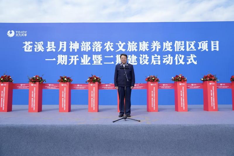 启动仪式上,天九共享控股集团有限公司董事局副主席李忠和表示,月神部落二期项目的正式启动,是天九响应国家乡村振兴战略的具体实践。二期项目不仅是一期功能的延伸,更是天九打造农文旅康养深度融合示范区的关键一步,它承载着以产业为媒,践行共同富裕的使命。希望通过项目带动,让更多苍溪人能在家门口就业创业,把“绿水青山”变成“金山银山”,实现“企业有回报、乡村有发展、村民有实惠”的多赢局面。
