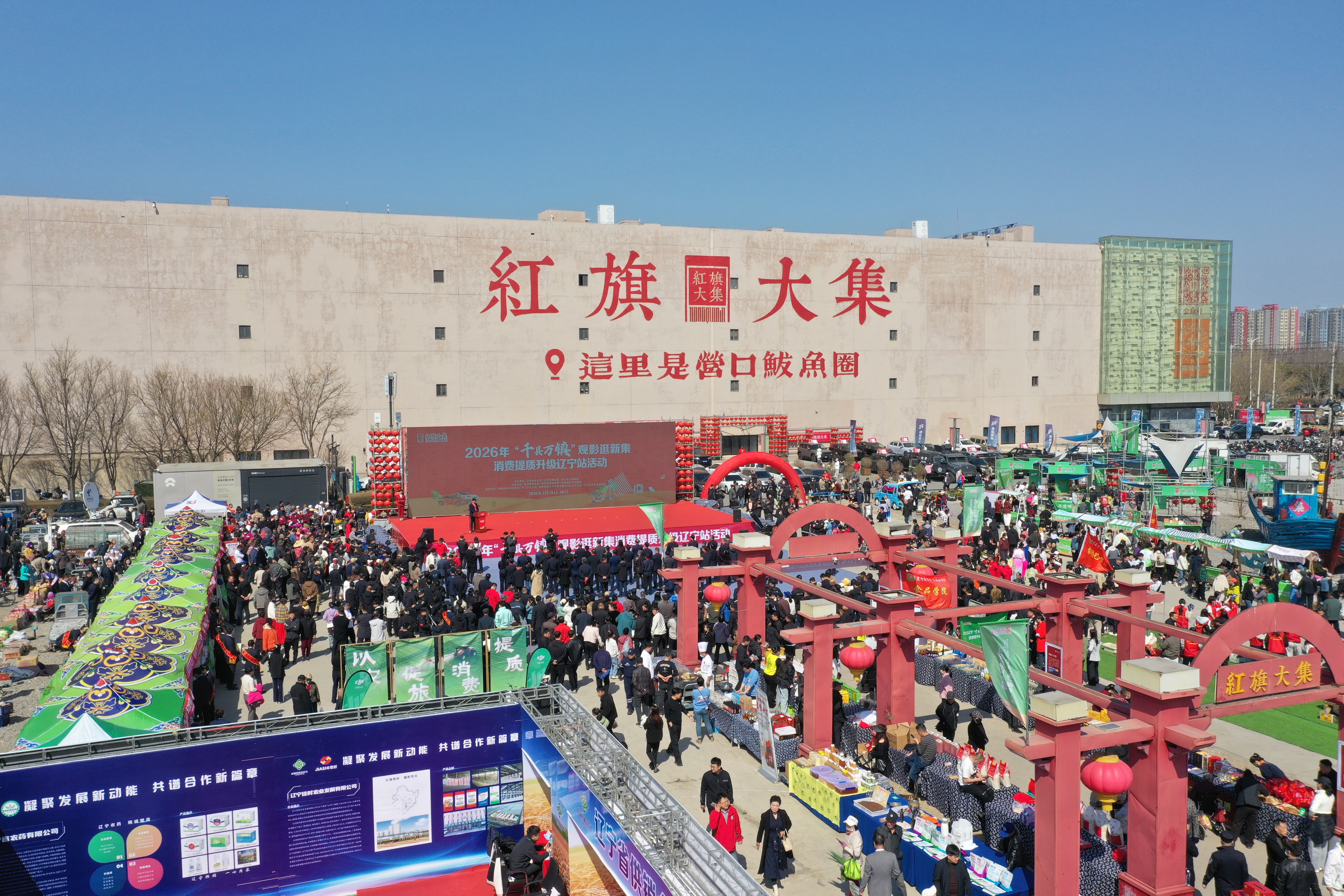 3月28日,2026辽宁“千县万镇”观影逛新集消费提质升级活动在营口市鲅鱼圈区红旗大集正式启动。本次活动依托红旗大集的集聚效应与乡土魅力,让惠民红利直抵乡村、让消费活力充分释放,以多元丰富的惠民举措架起工业品下乡、农产品进城的双向流通桥梁,为辽宁县域经济高质量发展注入强劲消费活力。活动由辽宁省商务厅、辽宁省电影局、营口市政府联合主办,为期3天持续至3月30日。