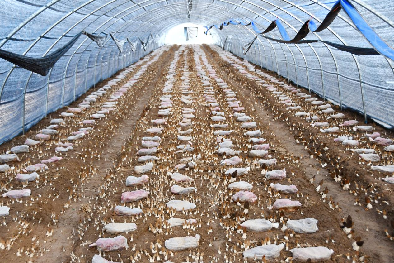 大棚内羊肚菌长势良好(吴江博 摄)