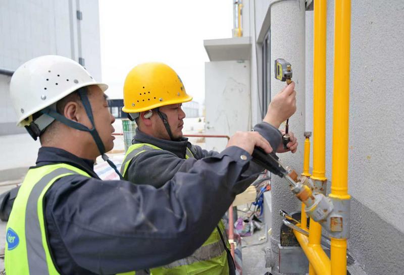 玉湖冷链(襄阳)交易中心,工程师正在进行调试制冷设施设备。(徐琦 摄)