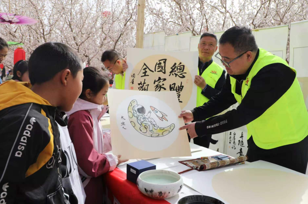 文化润心,安全入笔。活动特邀当地书画家,现场开展国家安全主题创作,挥毫泼墨间,“国泰民安山河无恙”“太空人”等一幅幅笔力遒劲的书法和色彩绚丽的美术作品跃然纸上,将传统艺术与国家安全教育深度融合,让群众在欣赏艺术之美的同时,吸引群众驻足观赏、合影留念,潜移默化地接受国家安全知识熏陶。