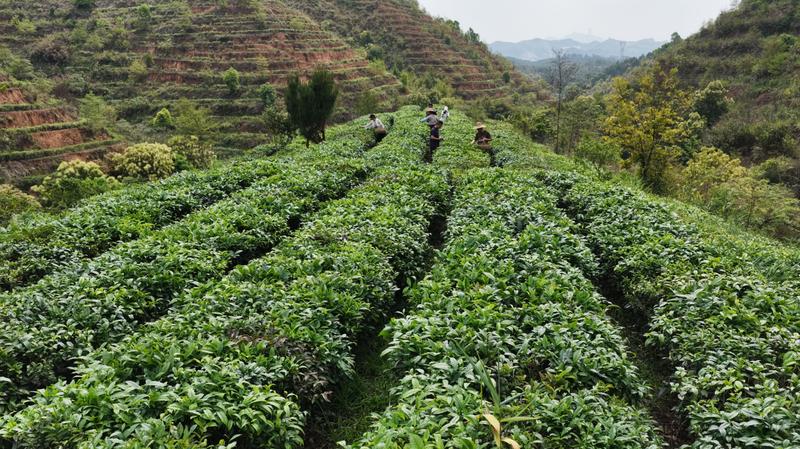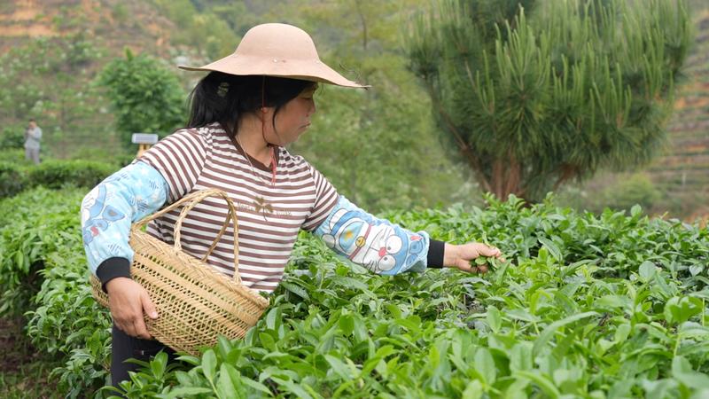 在万秀区夏郢镇德安村竹茗茶园,层叠起伏的茶山被新绿覆盖,春风拂过,茶香裹挟着草木的清香扑面而来,沁人心脾。茶农们身着轻便衣物,挎着竹篓,穿梭在整齐的茶垄间,指尖轻捏轻提,将符合标准的茶芽小心翼翼收入篓中,动作娴熟利落。