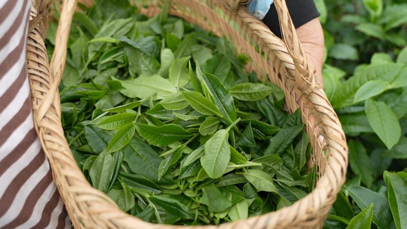 竹篓盛满新鲜春茶叶(吴玟军 摄)