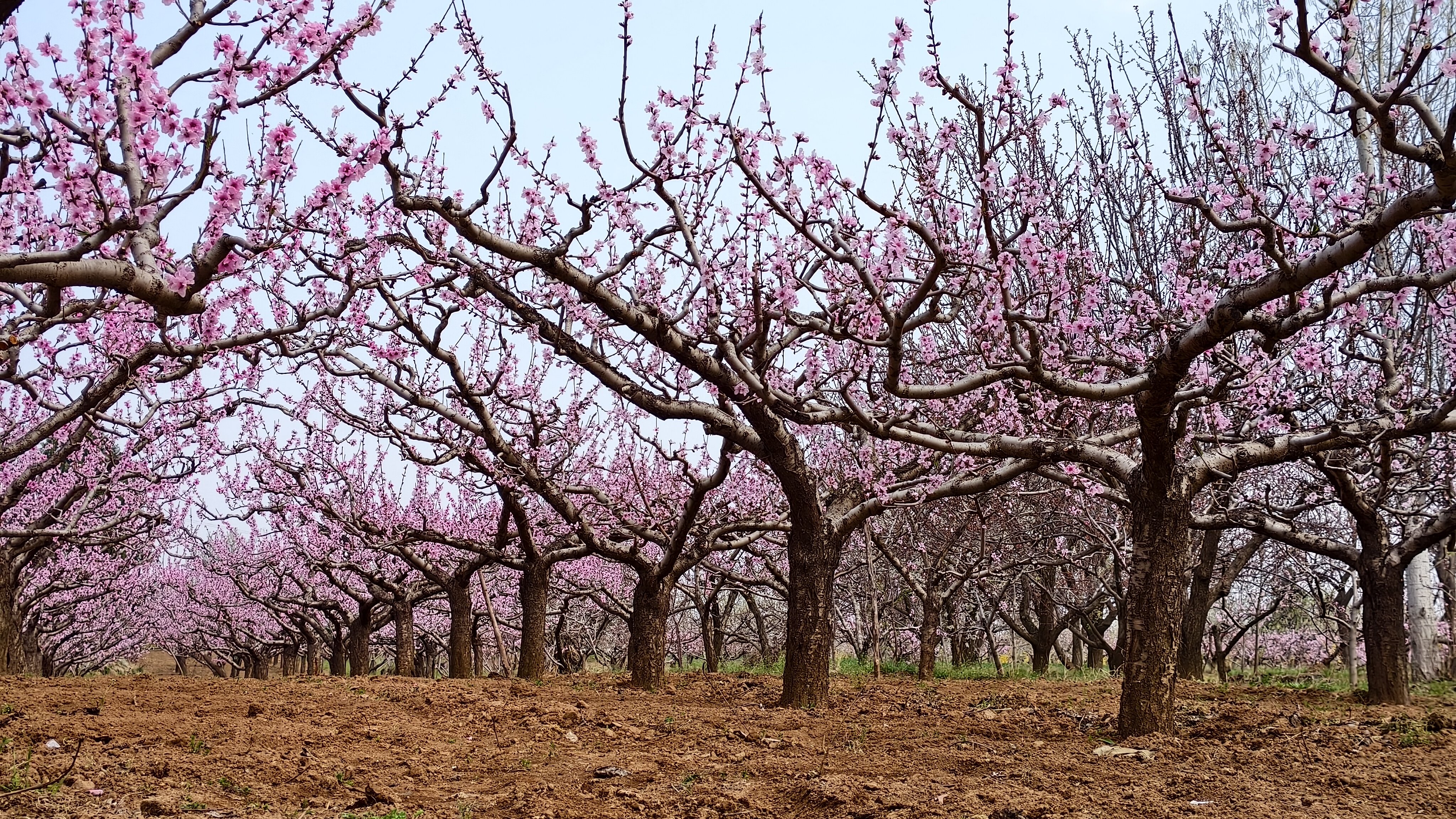 3000亩桃园里,粉艳的桃花缀满枝头。(王青伟 摄)