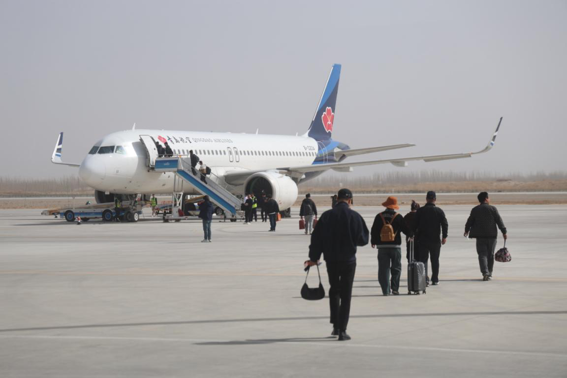 北京时间下午三点四十分,由青岛航空执飞的QW6207航班平稳降落在库车龟兹机场,从南京、兰州等地前来库车工作、探亲访友、旅游观光的旅客陆续走出机舱。