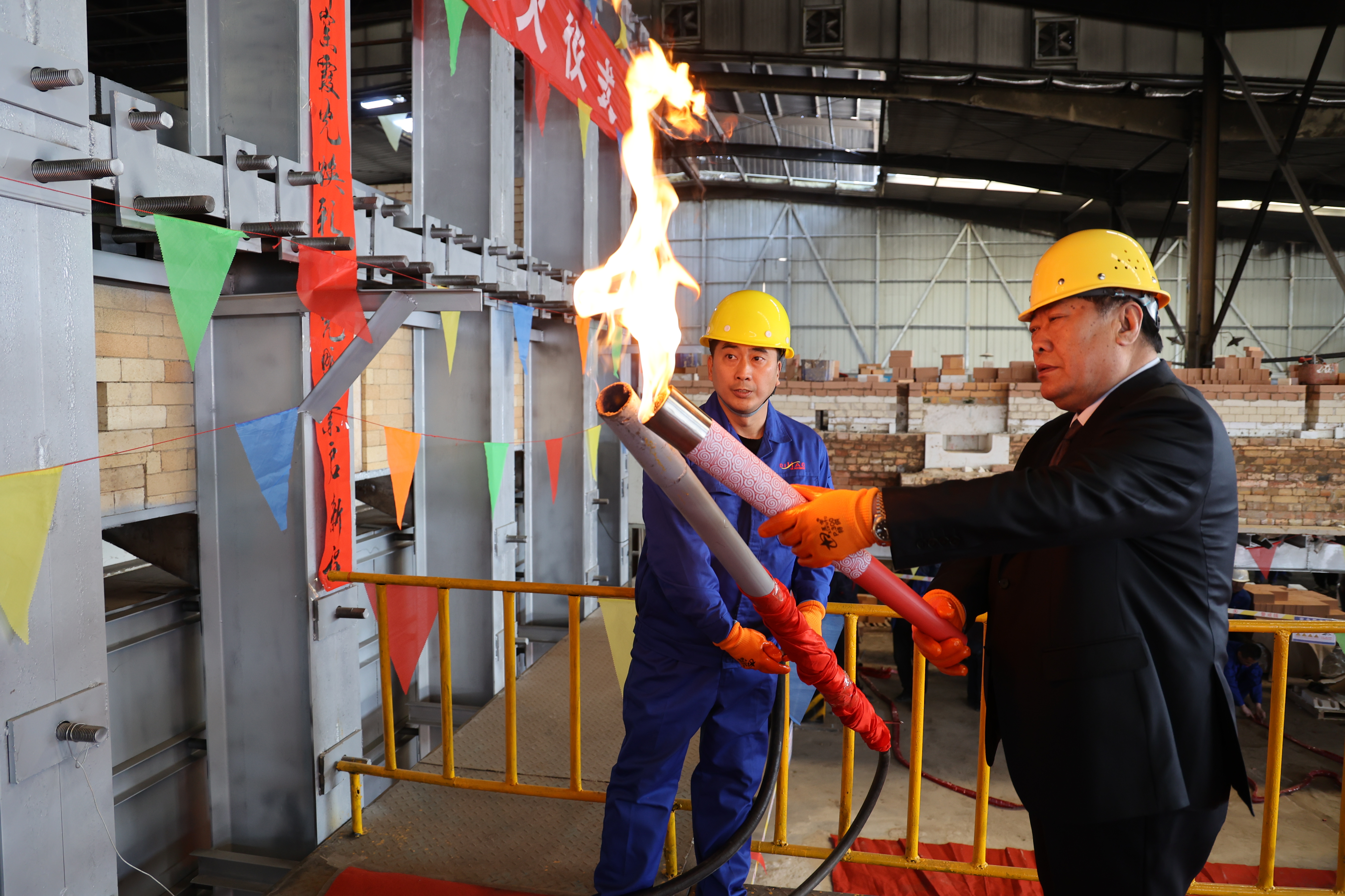 研讨会后,与会嘉宾共同参加大华玻璃150吨全氧天然气窑炉点火仪式,见证这一祁县玻璃器皿产业绿色升级的重要时刻。熊熊火焰标志着祁县玻璃器皿产业在技术创新、绿色制造方面迈出关键一步,开启了更高产能、更低能耗、更优成本的发展新纪元。项目引入国际领先全氧燃烧技术,配套12条全品类生产线,实现能耗降低15%—20%、生产效率提升20%以上,成为特色工业集聚地建设的核心标杆项目。