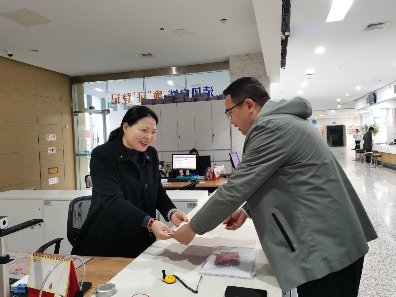 当天上午八点半,睢宁县政务服务中心刚一上班,汤超便赶来办理业务。在徐州市住房公积金管理中心睢宁管理部提贷业务负责人杨柳的全程陪同下,他先在睢宁县不动产登记交易服务中心办理了契税缴交,领取了不动产权证书,随后到公积金窗口办理提取业务。从进门到资金到账,整个过程高效顺畅。