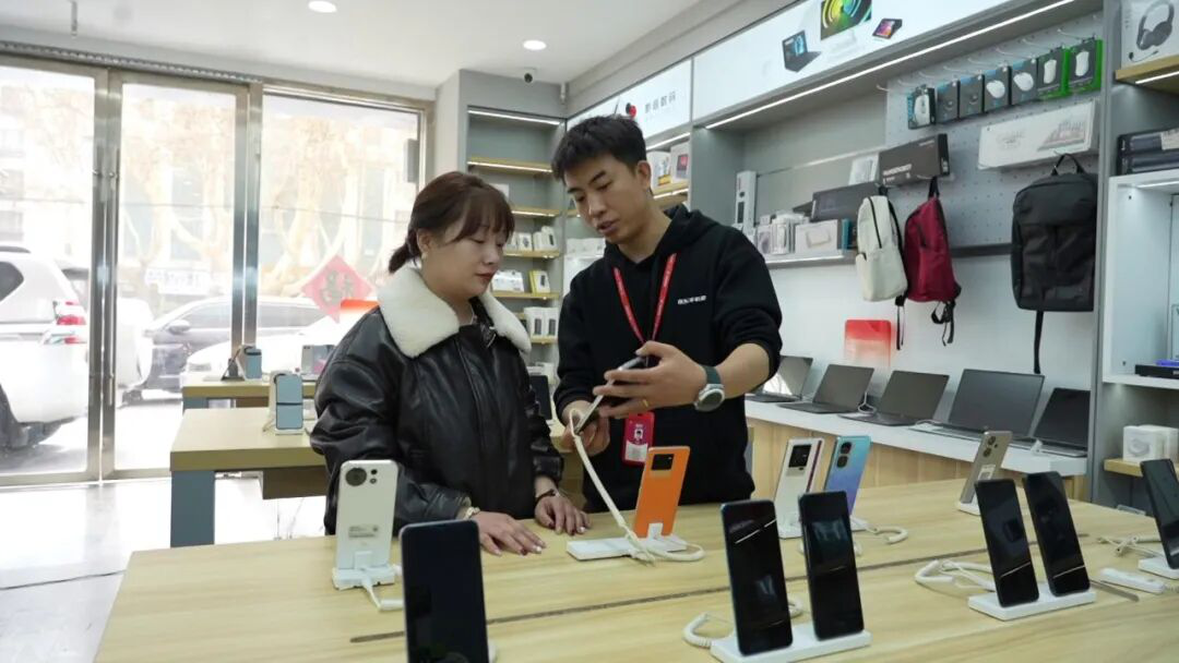 阿克苏京东手机数码(世纪广场店)店长靳磊介绍:“国补政策实施后,数码电器产品销量提升明显,这不仅满足了消费者对高品质生活的追求,也促进了消费市场的升级。现在大家比较愿意拿旧手机过来置换,老百姓得到了实惠,也给我们商户带来了实实在在的效益。”