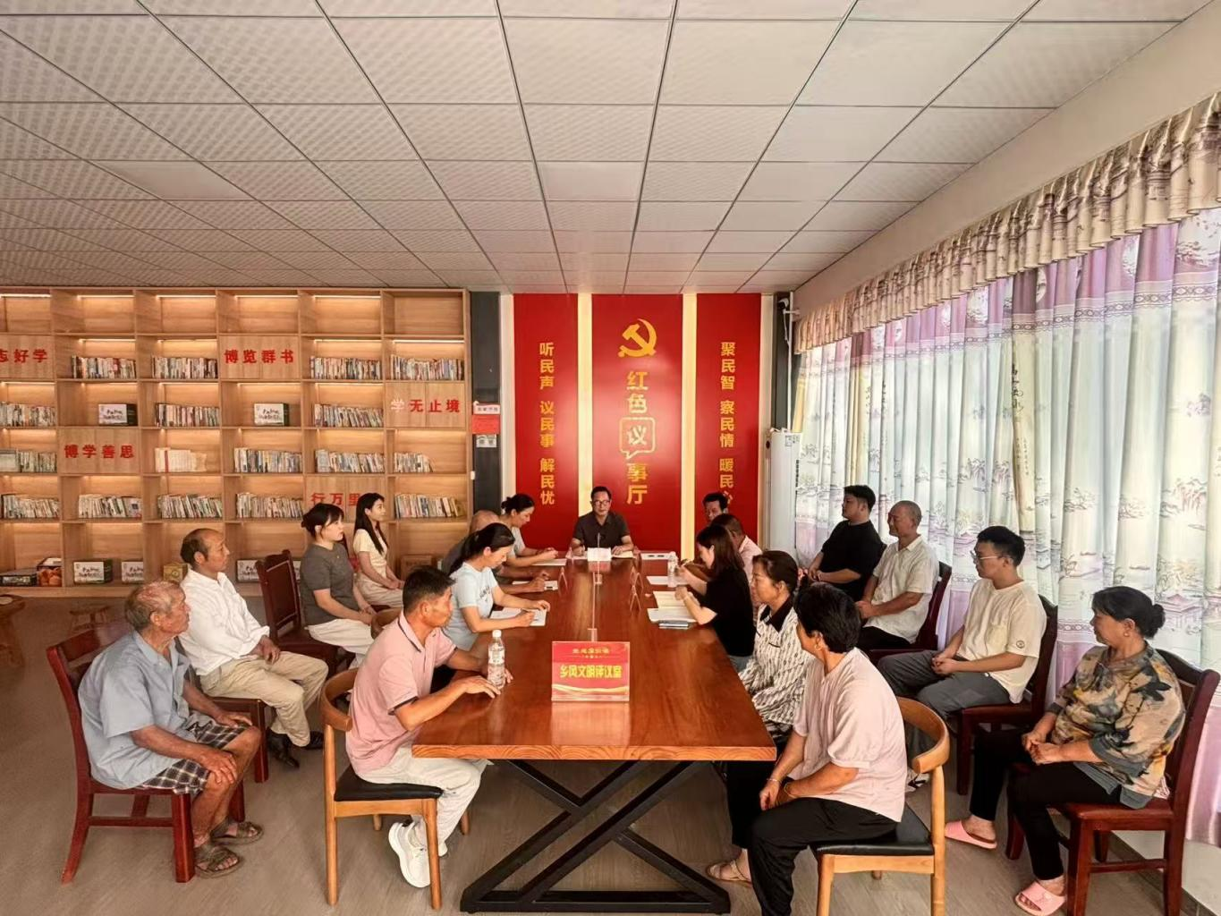 党建引领,锚定方向搭建议事平台。潘墩村党组织将党建贯穿项目全过程,村党组织书记牵头划定议事范围、确定议题,将民生保障、矛盾调解、环境整治等群众关切事项纳入其中。在潘墩中心村打造“红色议事厅”,配套“群众说事角”“党员议事区”等功能区域,同时在田间地头、农家院落设置“流动议事点”,形成“固定+流动”议事网络。引导党员亮身份、作表率,统筹党员代表、群众代表、乡贤骨干等多方协商,规范议事流程,让基层协商有核心、有抓手、有保障。截至目前,议事平台累计接待群众咨询、反映诉求百余次,实现议事阵地全覆盖、群众诉求就近达,有效破解了以往基层协商无阵地、无抓手的难题,筑牢了党建引领基层治理的坚实根基。