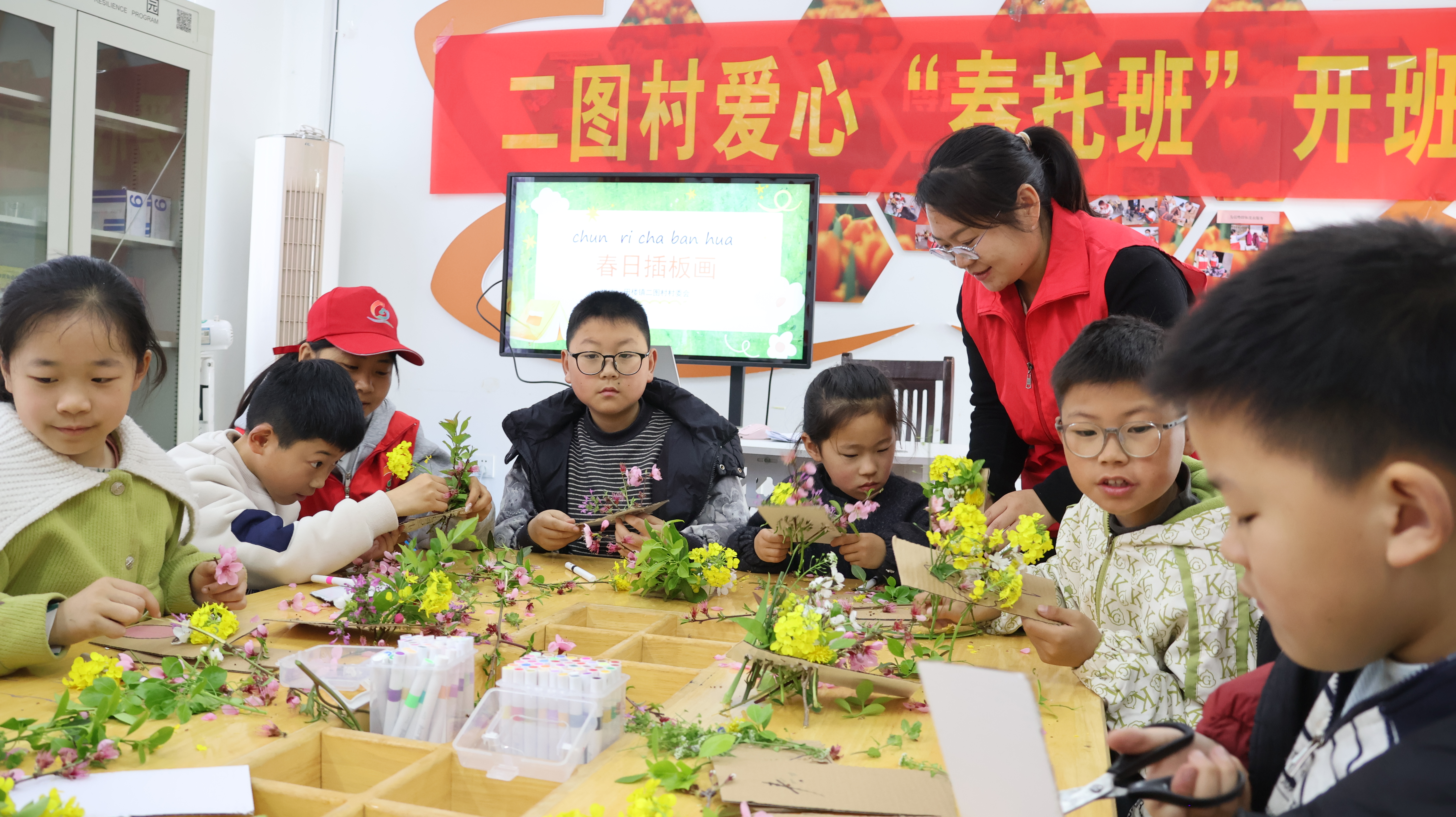 4月1日上午,江苏省灌南县田楼镇二图村,孩子们正在参加手工纸板插花、老鹰捉小鸡等趣味活动。针对春假期间孩子看护难题,二图村专门开设“春托班”,组织志愿者为孩子提供全程爱心陪护,切实解除外出务工家长的后顾之忧,用温情筑牢成长防线,让乡村充满温情与力量。(记者 张伟伟)