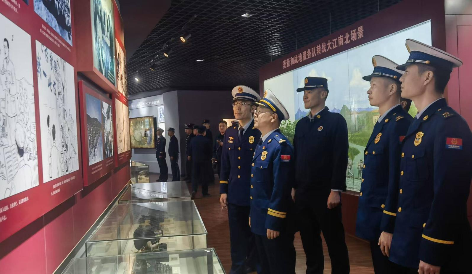 开鲁县消防救援大队指战员们在麦新纪念馆内展台前驻足观看(张楠 摄)