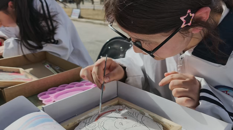研学启新,筑牢同心根基。拜城县联合新疆龟兹研究院启动主题研学实践活动,这是前期群众性文化活动的升华与延伸,更是常态化推进铸牢中华民族共同体意识工作的重要举措。新疆龟兹研究院依托克孜尔石窟千年壁画资源与龟兹石窟博物馆馆藏底蕴,结合不同群体认知特点,安排资深讲解员提供专业讲解,通过“面对面”解读让历史细节可感可知;同时设置壁画临摹工坊、开展壁画元素手作等活动,推动石窟文化从“静态观赏”向“动态体验”转变,让文化传承更具吸引力与感染力。