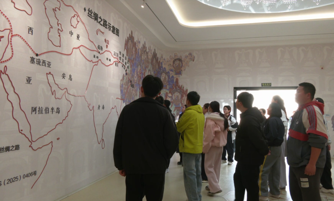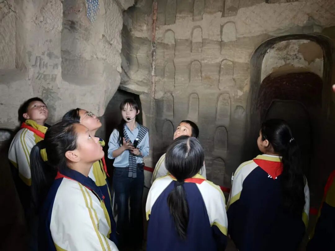 讲解员为学生细致讲解千年壁画背后的故事(尹玲 摄)
