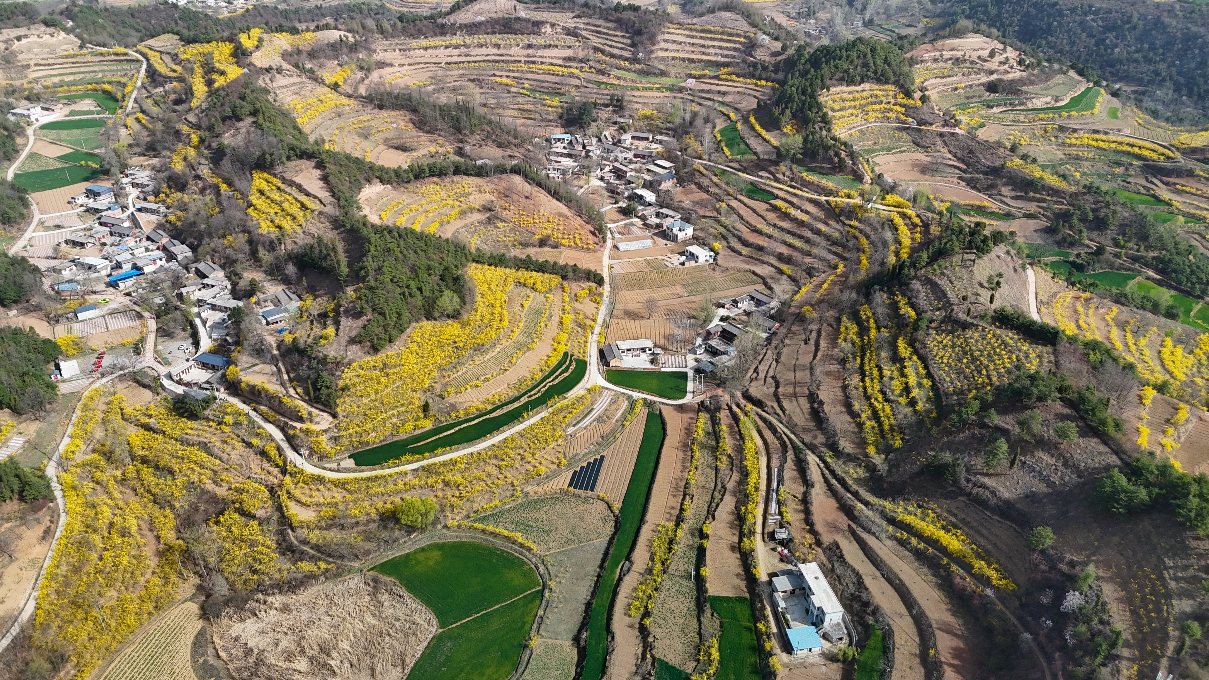 沙坝镇的山野间,万亩连翘花如期绽放。(陈争强 摄)