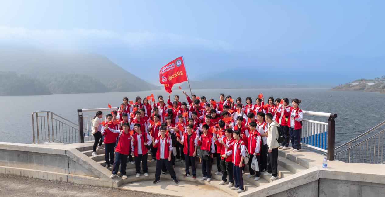 车队沿106国道前行,抵达富水水库坝下后,师生徒步瞻仰富水大坝这一社会主义建设伟大成果。青山环抱、碧水长流,大坝巍峨矗立,同学们驻足打卡、齐声传唱《没有共产党就没有新中国》《我和我的祖国》等经典红歌,嘹亮歌声回荡河畔,红色氛围浓厚,凝聚起团结奋进的磅礴力量。