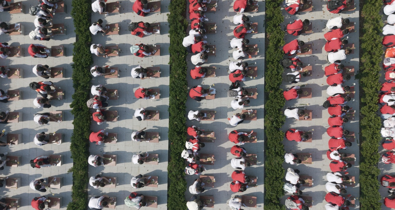 全体师生向革命先烈默哀(洪汉友 摄)