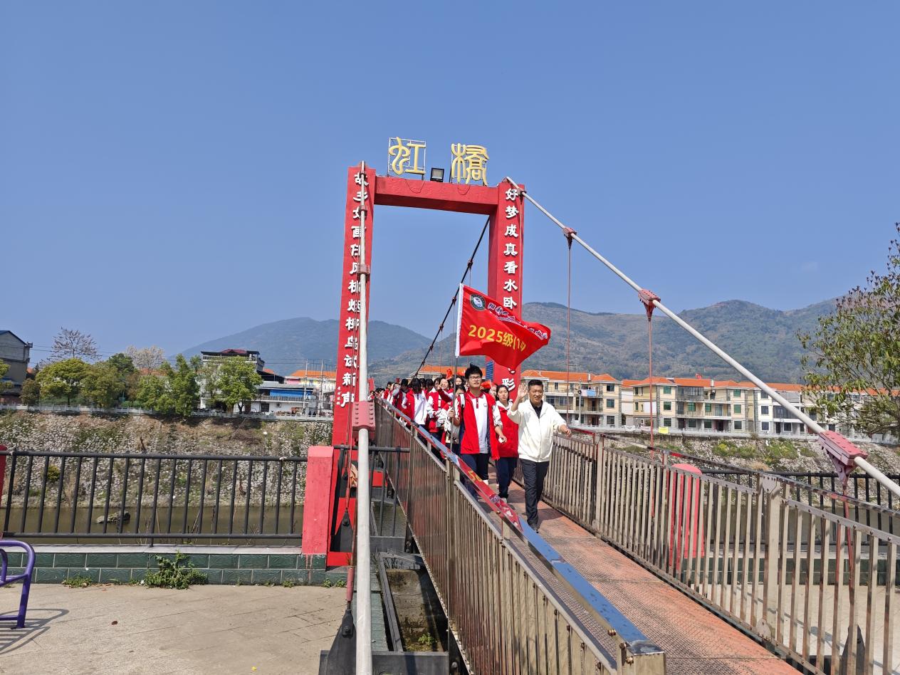 随后,师生循着红三军团革命足迹,踏上15公里徒步征程。长路漫漫,步履铿锵,队伍一路途经汪家垅村、渡口村,沿途欢声笑语、互帮互助。体力不支时,同学伸手相扶;步伐疲惫时,红歌提振士气。大家身着红衣、手持红旗,以坚韧意志丈量红色土地,用团结协作诠释集体精神,全程纪律严明、秩序井然,展现出实验高中学子昂扬向上的精神风貌。