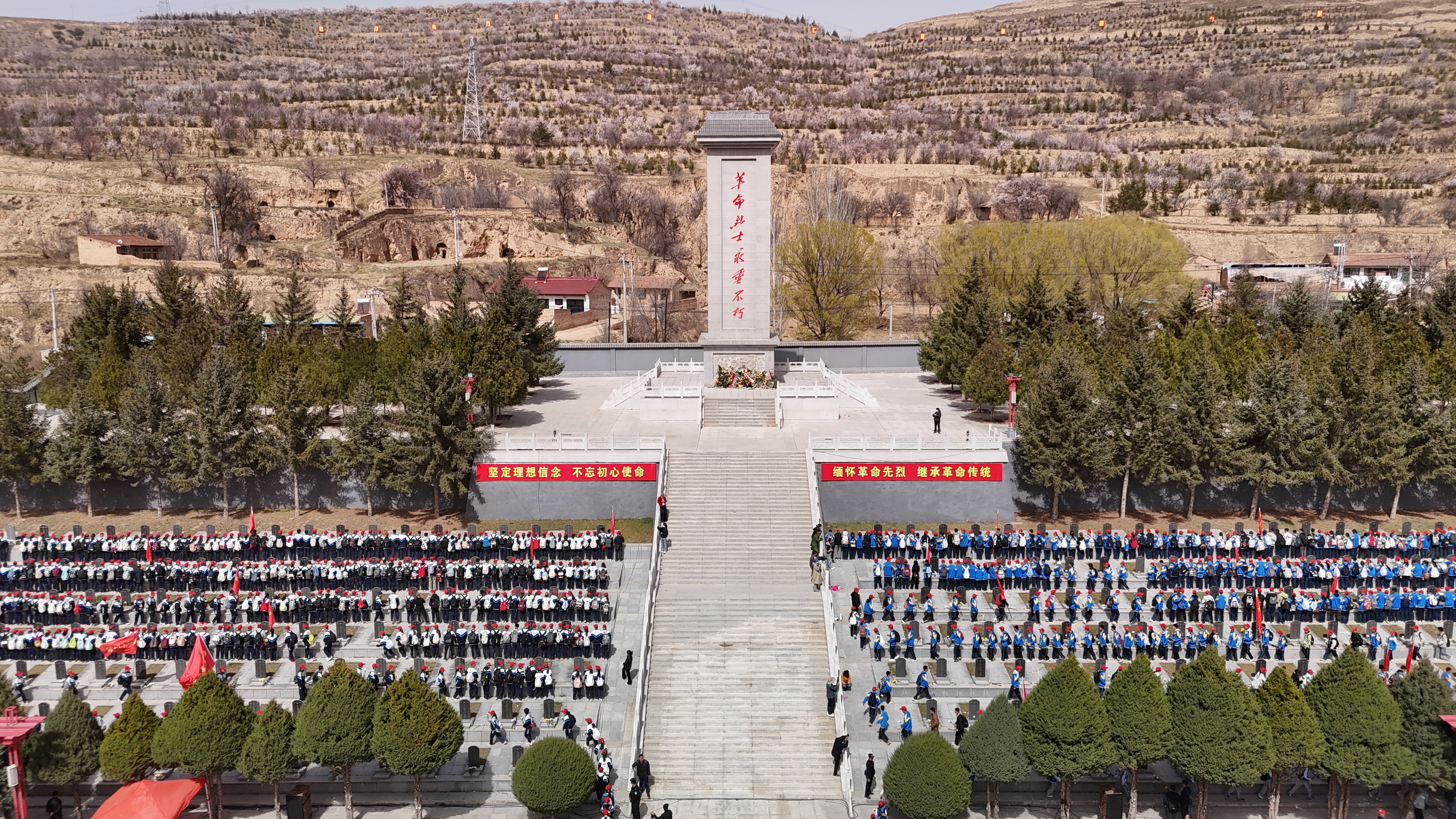 彭阳县全体师生及机关党员祭奠革命烈士(李学虎 摄)