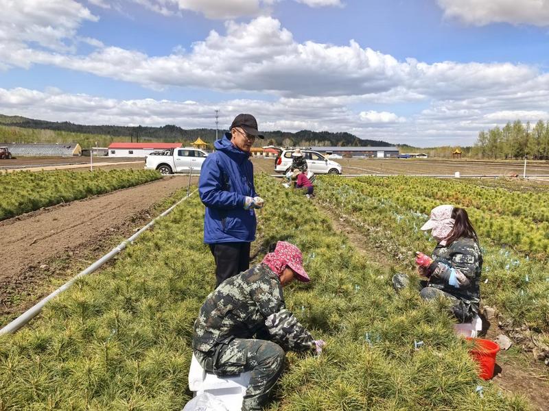 林业局工作人员在嫁接西伯利亚红松苗木(徐丽华 摄)