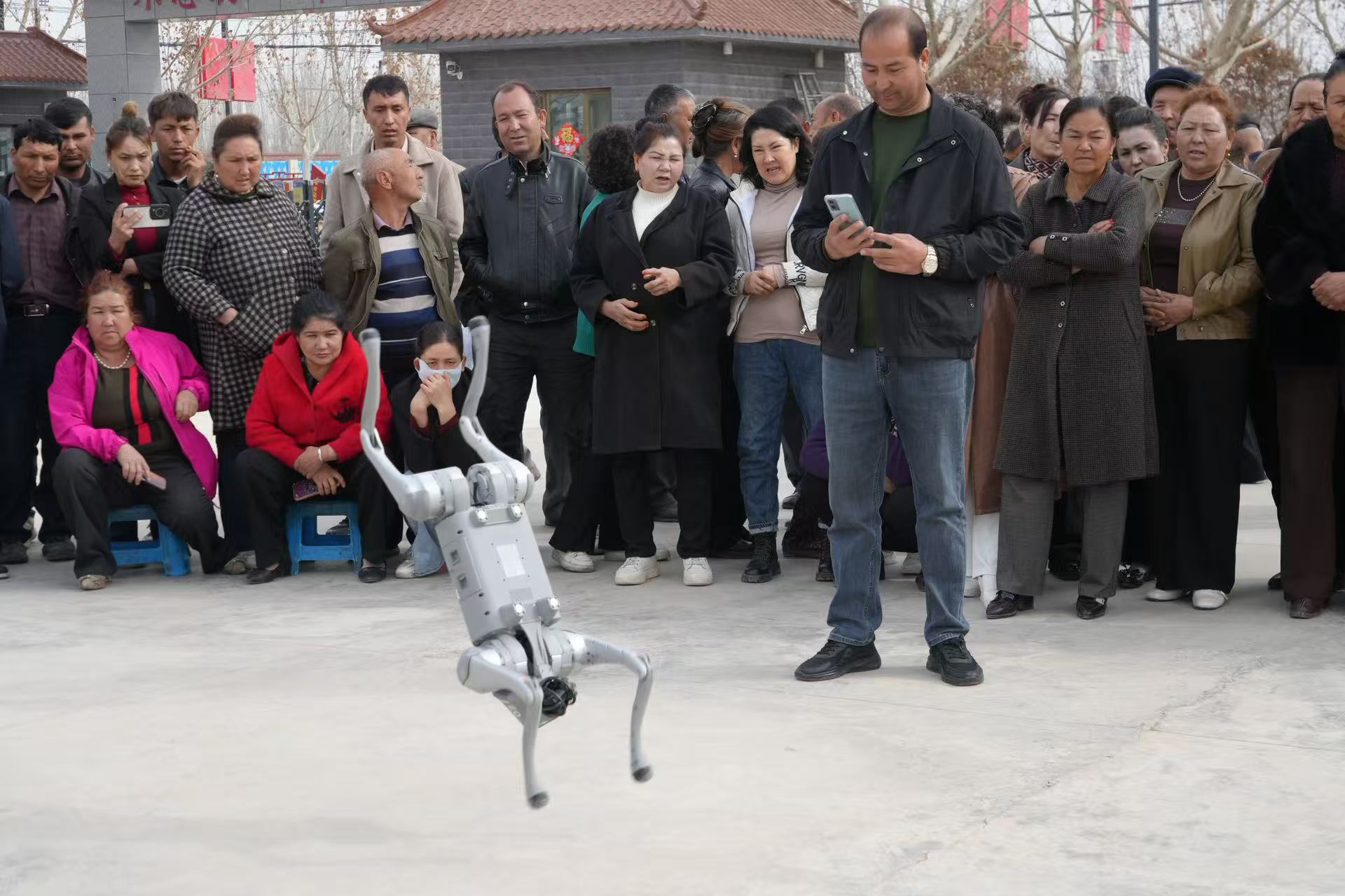 “科技馆来村里了,快带孩子去看一看!”活动当天,思源村活动广场人头攒动、暖意融融。温宿县科技馆带来的四足机器人、人形机器人随着音乐灵活摆动、整齐跳舞,瞬间点燃现场气氛,大人小孩纷纷驻足围观、拍照喝彩。双曲狭缝、磁力传动摆、锥体上滚、短期记忆测试等互动科普展品依次排开,直观展现力学、光学、记忆科学的奇妙原理。孩子们好奇地动手操作、踊跃提问,在观察与体验中激发科学兴趣;中老年群众认真聆听讲解,学习节水灌溉、科学种养、安全用电、应急避险等实用知识,把“科技干货”记在心里、带回家里。活动现场累计发放科普手册、宣传彩页数百份,让科学理念走进千家万户、浸润日常生产生活。