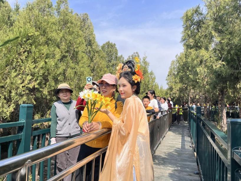 为让游客沉浸式感受桃乡魅力,肥城将桃文化与国风文化深度融合,推出古装巡演、汉服租赁、专业妆造等特色服务,身着汉服的游客漫步花海,一步一景皆成画,成为春日里最动人的风景线。