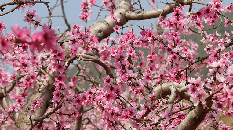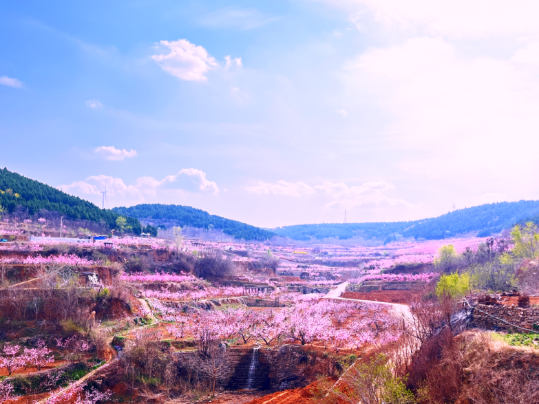 眼下,山东肥城十万亩桃花进入盛花期,粉白相间的桃花缀满枝头,依山而植的桃林形成层次分明的梯田,风过处花浪翻涌,将这座千年桃都晕染成一片粉色海洋。