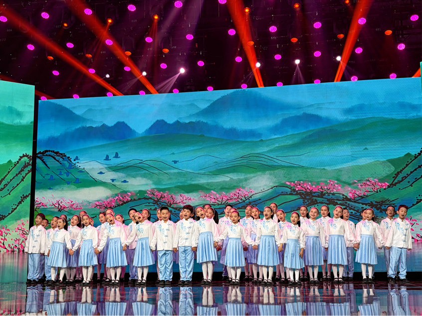 晚会上,小朋友们演唱歌曲《千万里找寻着你》。(苏珊 摄)