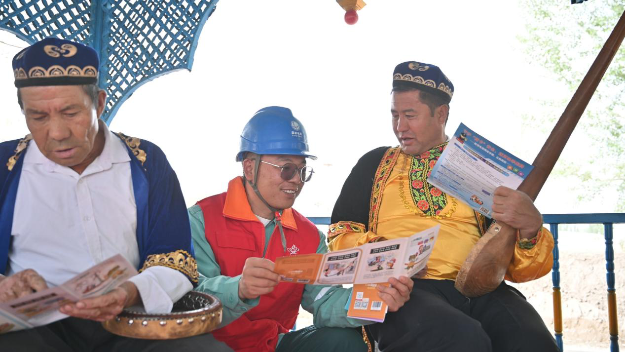 服务队在拜什吐格曼乡梨花旅游季活动中向群众开展防外破宣传。(邸敏 摄)