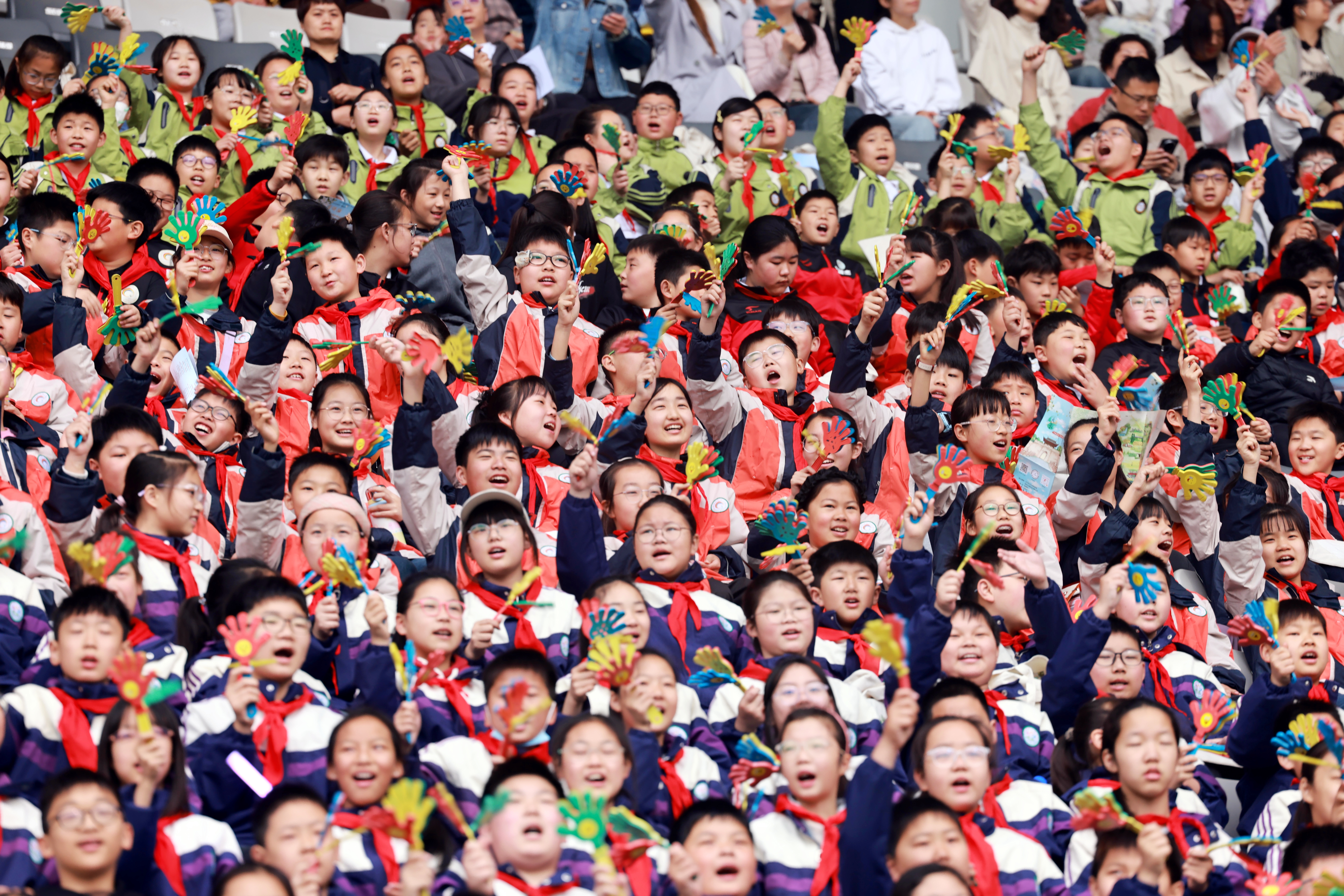 开幕式现场观众为运动员欢呼(陈明 摄)