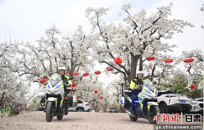 图为皋兰公安全力护航“梨花季”平安顺畅(李亚龙 摄)