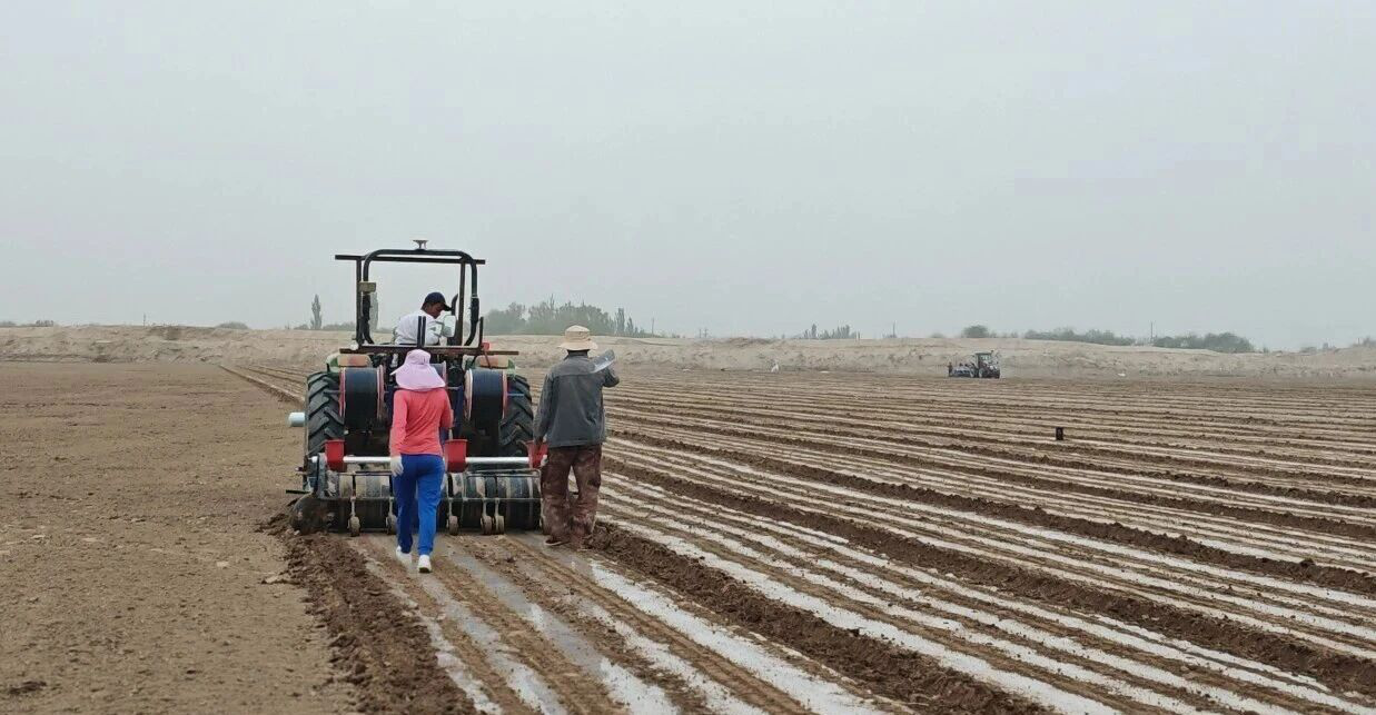 4月11日,阿瓦提县“耐盐碱适生棉花品种筛选与评价”试验示范在阿依巴格镇草原河新村正式开播。示范田里,北斗导航智能驾驶播种机高效作业,一次性完成滴灌带铺设、铺膜、打孔、播种、覆土全流程一体化操作,播种作业精准又高效。