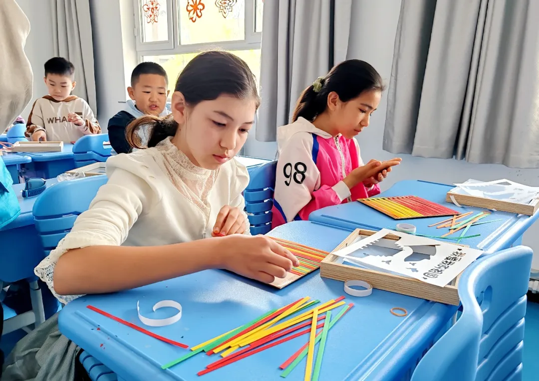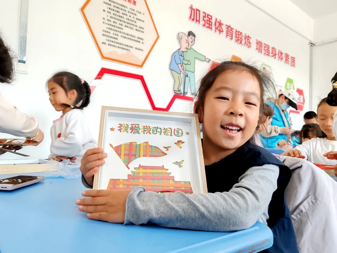 爱国知识抢答环节点燃现场氛围,孩子们踊跃举手、争先作答,在互动中深化爱国知识储备。非遗竹编画手工环节成为活动亮点,五彩竹篾在孩子们指尖跳跃翻转,大家细心粘贴国门、国旗、戍边等元素,将爱国情怀融入手工作品,每一幅作品都承载着少年们对祖国的真挚敬意。活动最后,大家踊跃分享爱国人物事迹与活动心得,言语间满是收获与感动。