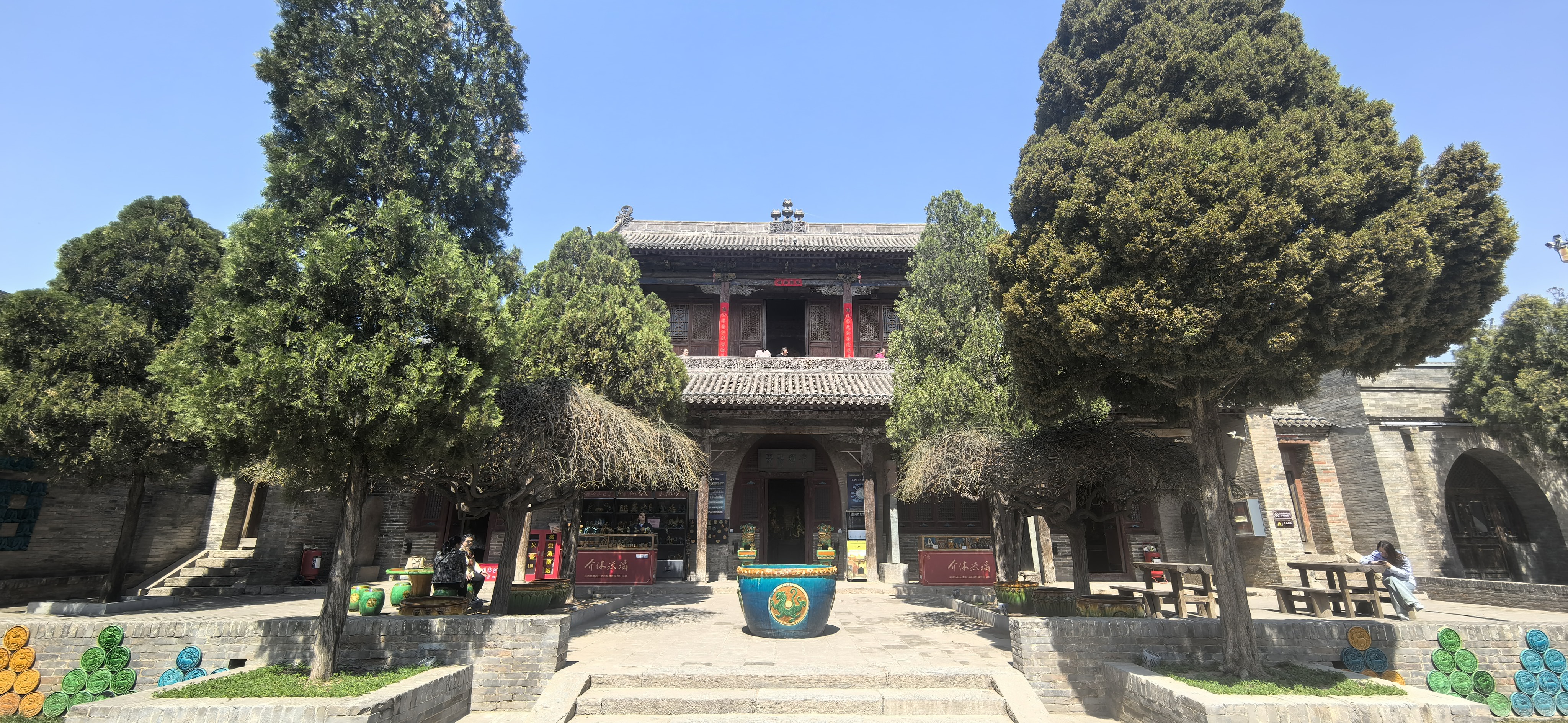 站在古堡南堡门远眺,青砖灰瓦间,孔雀蓝琉璃脊兽熠熠生辉,空王行祠的殿顶黄绿蓝三色琉璃构件,尽显介休“琉璃艺术之乡”的底蕴。堡内,龙脊街两侧的明清院落鳞次栉比,魁星楼檐铃轻响,可罕庙的残碑诉说着隋唐往事。很难想象,十余年前,这里还是建筑倾颓、私搭乱建频发的濒危古迹。