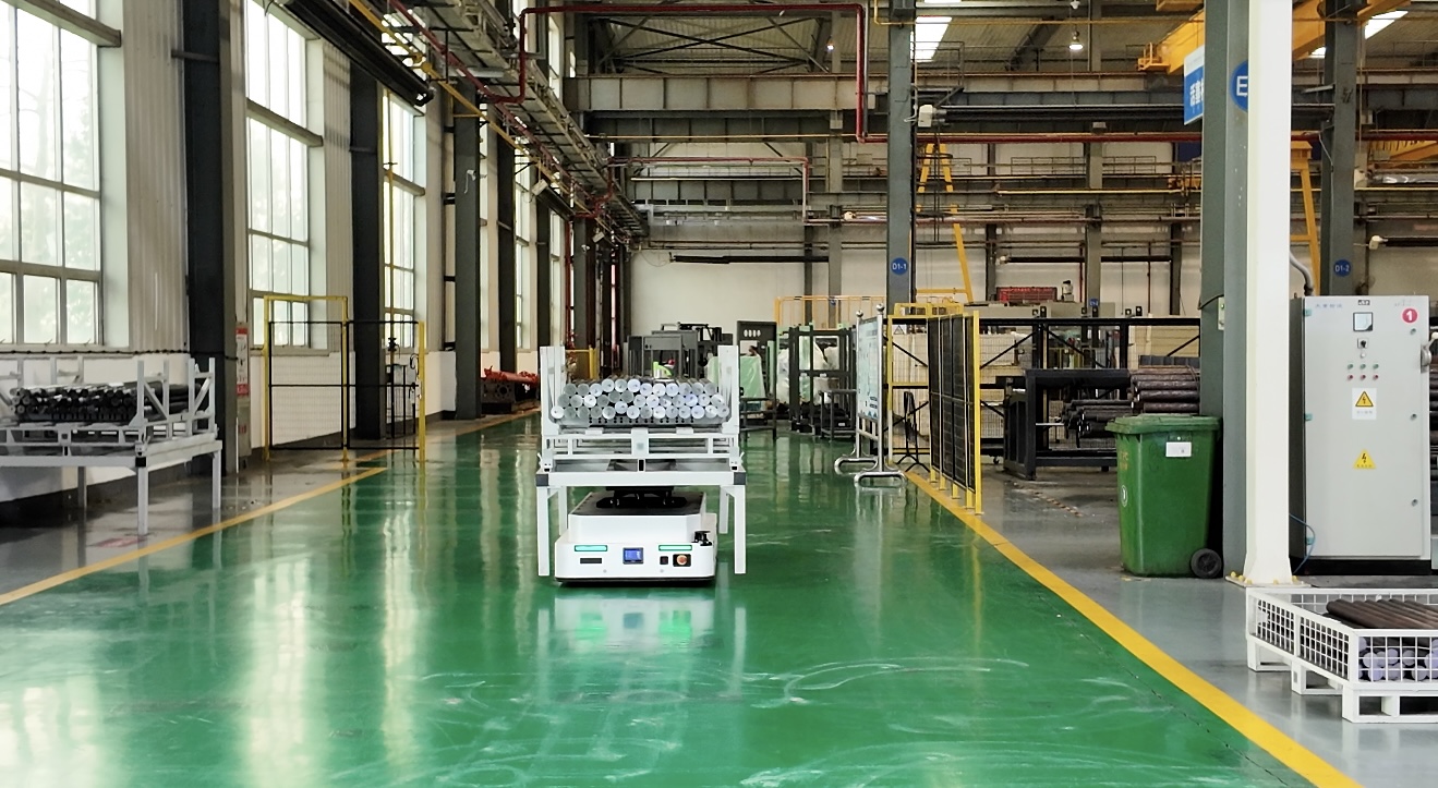 生产车间内智能搬运设备有序运行(席兆平 摄)