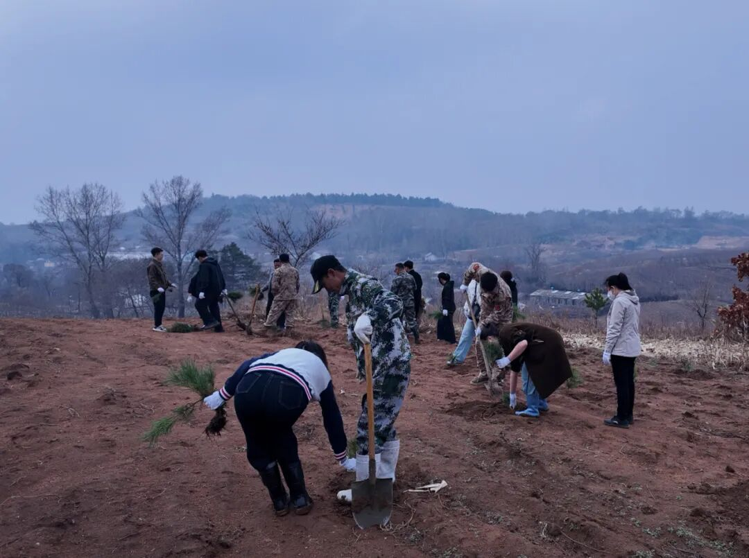 当天上午9时,植树现场一派繁忙有序、热火朝天的景象。参与干部热情饱满、干劲十足,大家三五成组、分工协作,挥锹铲土、深挖树坑、扶正树苗、悉心培土、提桶浇水、围堰夯实,每一道工序都严谨细致、规范到位。现场欢声笑语不断,新栽的松树苗整齐排列、迎风挺立,焕发勃勃生机。