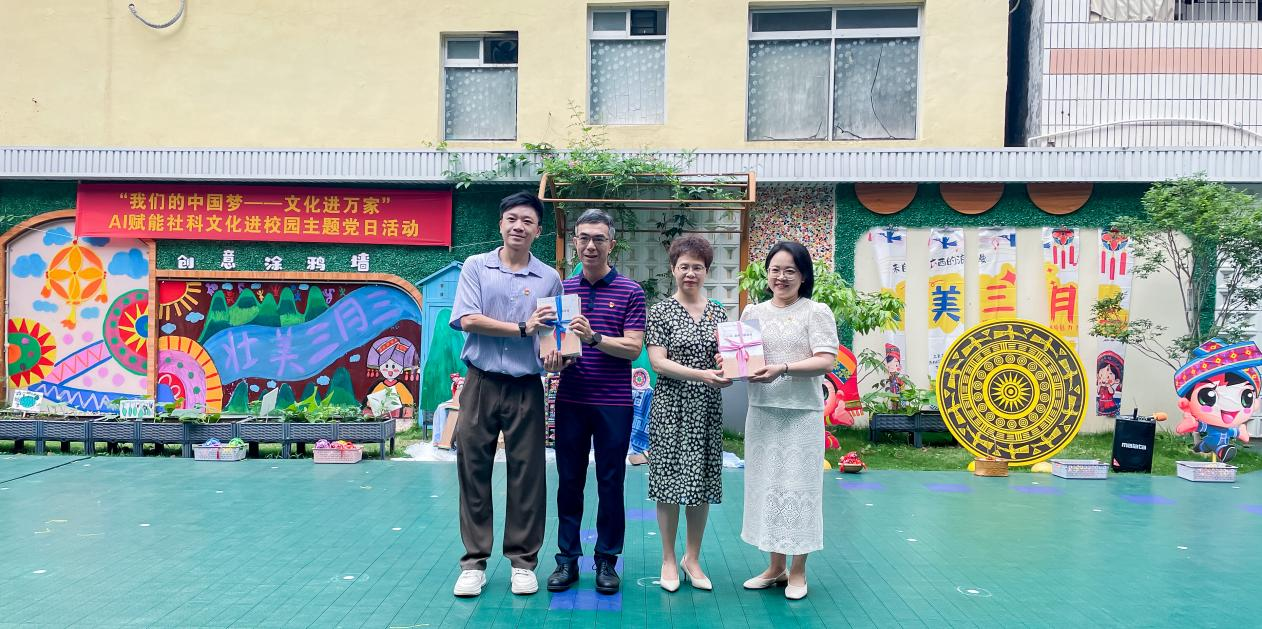为迎接广西传统节日“三月三”,深化民族团结进步教育,践行社会主义核心价值观,充分发挥社科联“联”的作用与“科普”职能,4月15日,广西万秀区社科联联合梧州市社科联、市第三中学、市六一幼儿园等单位党组织,在梧州市六一幼儿园开展“我们的中国梦——文化进万家”暨AI赋能社科文化进校园活动。