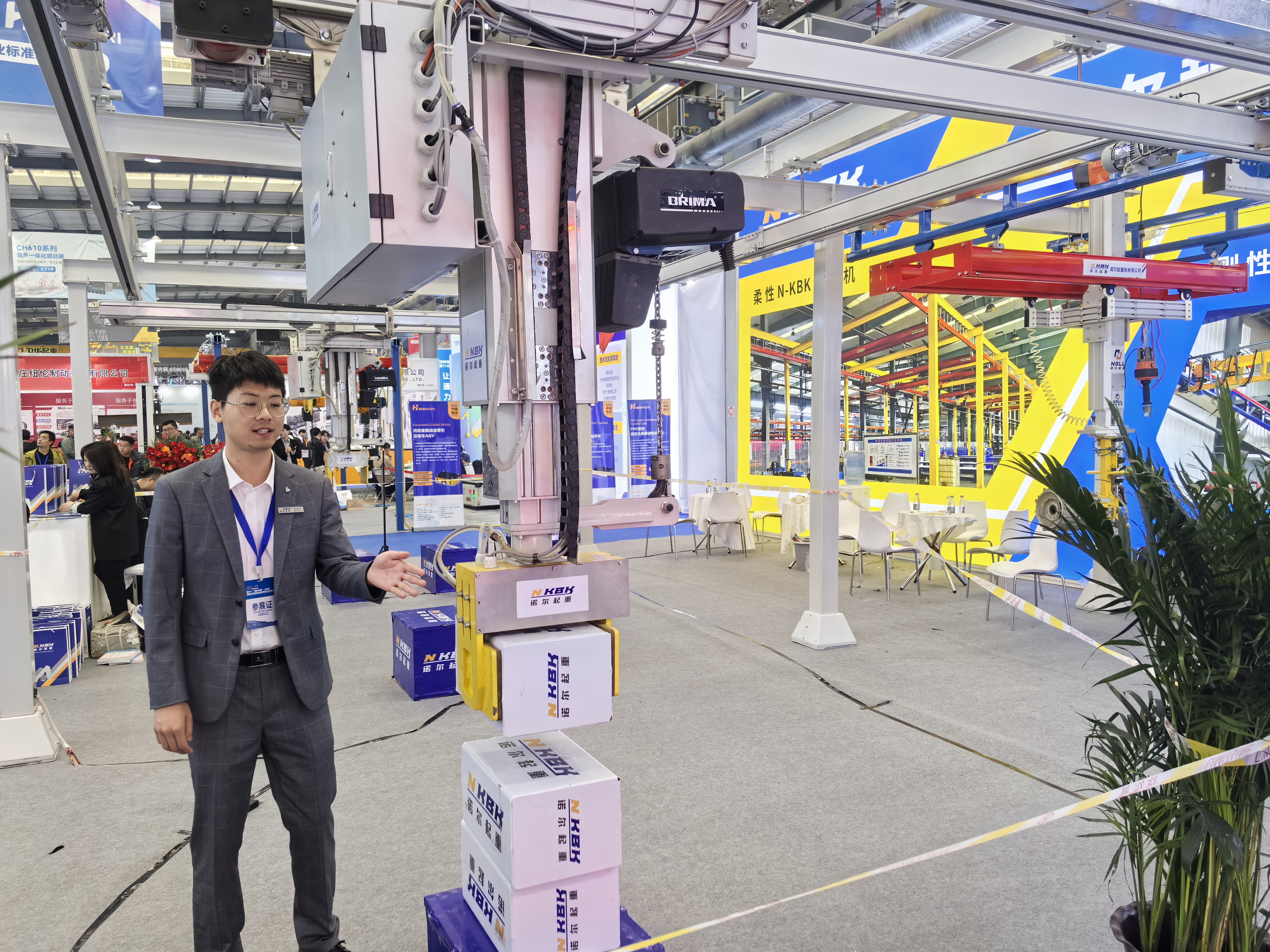 诺尔起重机有限公司销售经理在讲解产品性能(李向东 摄)